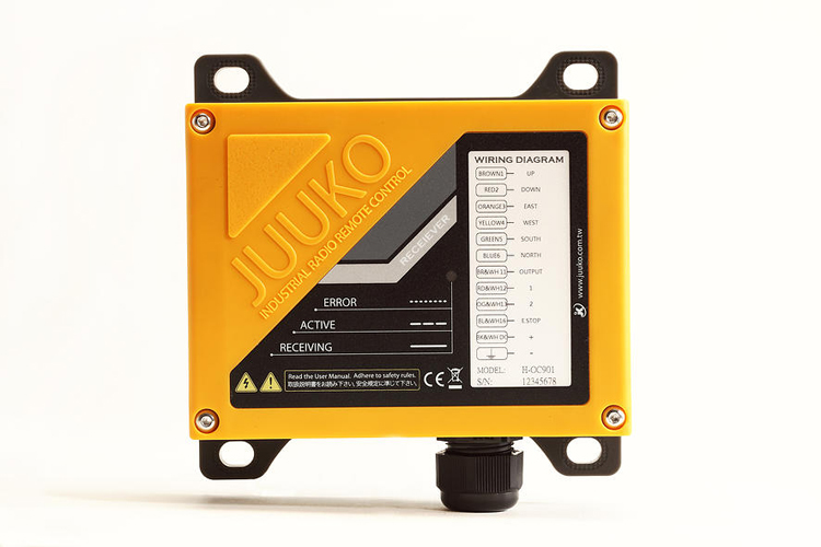 The receiver unit H Series - JUUKO has been designed to minimize the aesthetic impact on the installation on the machine. Its small size and ergonomics make it ideal device as the best interface element remote control adaptable to any type of machinery.