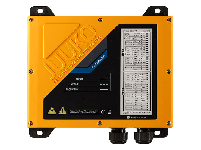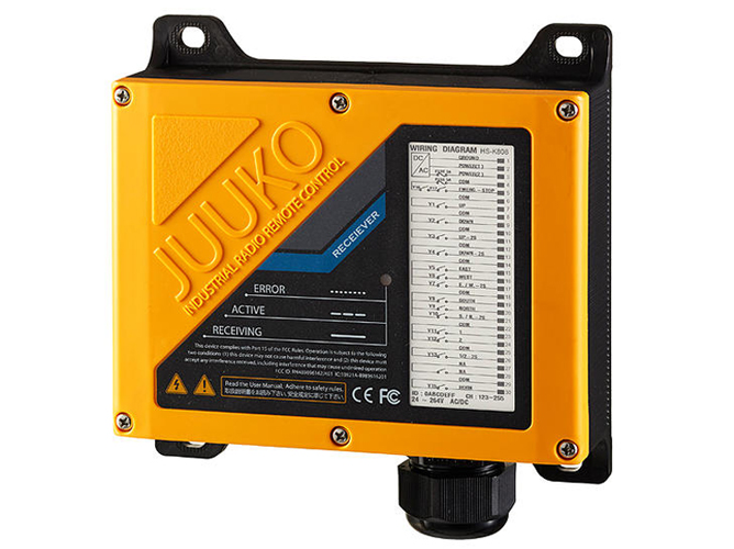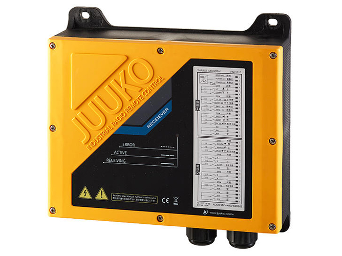 The receiver unit HM series - JUUKO has the same safety requirements of the HS series (double safety relay stop circuit).